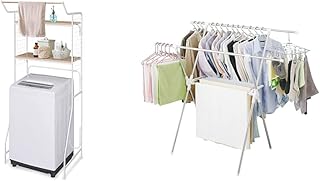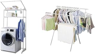 アイリスオーヤマ ランドリーラック ハンガーバー付き 可動棚 幅約69.5㎝(幅61㎝までの洗濯機に対応) ホワイト HSLR-695 & 洗濯物干し 室内物干し タオルハンガー付き 布団も干せる 軽量 約5人用 幅約92~162×奥行約64×高さ約127.5cm CMB-92XR【セット買い】