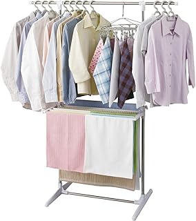 アイリスオーヤマ ランドリーラック ハンガーバー付 幅66.5~95cm×奥行54.5×高さ182㎝ HLR-181P & 洗濯物干し 布団干し 室内物干し 約5人用 簡単組み立て室内物干し ステンレス 伸縮タイプ 折りたためる 幅92~162㎝ CMB-92XR【セット買い】