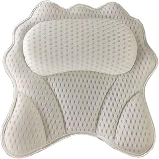 Diki Home 3Dお風呂 枕 バスピロー マシュマロピロー 吸盤付 風呂 ピロー 長風呂 うたた寝 浴槽用 半身浴 消臭 抗菌 カビ防止 入浴 バス バス用品 バスグッズ お風呂用枕 人間工学 (シェル-ホワイト)