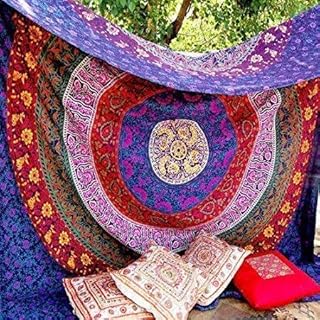 Marubhumi ヒッピーマンダラボヘミアンタペストリー インド風インテリア装飾 サイケデリックタペストリー 壁吊り下げエスニック装飾タペストリー 85×55インチ パープル マルチ 85 x 90 inches パープル Mohit-DNT-873