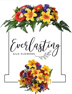 永遠に続くシルクフラワー 墓地 造花 墓地と記念品 美しい造花 ヘッドストーン用 - にじまないカラー (レッド、イエロー、パープル、パープル、ブーケ1つとサドル1つ)