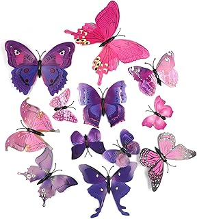 Royee 12個 パープル 蝶 ダブルウィング 冷蔵庫 マグネット 壁 デカール 剥がせる ステッカー 装飾 ホーム キッチン 子ども部屋 寝室 オフィス テーマ パーティー 教室 窓 装飾 (パープル)