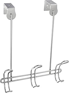 (3 Hook) - InterDesign Classico Over Door Storage Rack - Organiser Hooks for Coats, Hats, Robes, Clothes or Towels - 3 Dual Hooks, Chrome