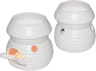 Singeek セラミックティーライトキャンドルホルダー/ワックスメルトウォーマー エッセンシャルオイルバーナー アロマテラピーディフューザー リビングルーム バルコニー スパ ヨガ 瞑想用 (ホワイト+ホワイト 2個)