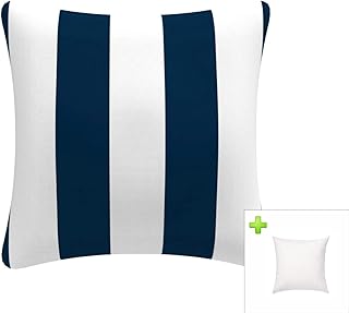 (Stripe Navy & White) - Indoor/Outdoor Throw Pillow with Insert 46cm x 46cm Decorative Square (Navy & White, Stripe) Cushion Covers Pillow Sham for Couch Bed Sofa Patio Furniture by FBTS Prime