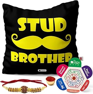 indibni Rakshabandhan RakhiギフトHamper Designer Crystal Studded Rakhi for Brother with Roli Chawal & Happy RakshabandhanグリーティングカードスタッドBrotherブラックプリント12 x 12クッションフィラー