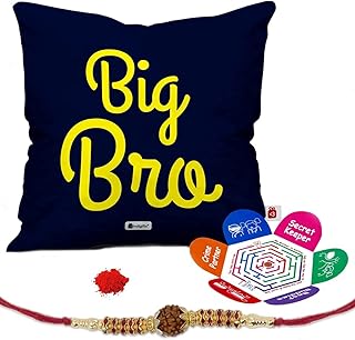 indibni Rakshabandhan RakhiギフトHamper Designer Crystal Studded Rakhi for Brother with Roli Chawal & Happy RakshabandhanグリーティングカードBig BroブルーPrinted 12 x 12クッションフィラー