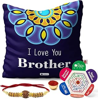 indibni Rakshabandhan RakhiギフトHamper Designer Crystal Studded Rakhi for Brother with Roli Chawal & Happy RakshabandhanグリーティングカードI Love My BrotherブルーPrinted 12 x 12クッションフィラー