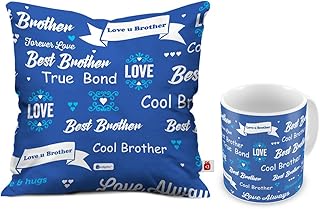 indibni Rakshabandhanギフトfor Brother Bhaiya BhaiコンボセットBrother Love Youブループリント12 x 12クッションフィラー&セラミック