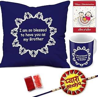 indibni RakhiギフトHamper Pyara Bhaiya with Roli Chawal Happy RakshabandhanグリーティングカードBlessed to Have Brother Like YouブルーPrinted 12 x 12クッションフィラー&セラミック