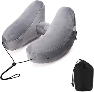 Grand Day 正品 ネックピロー トラベルピロー エアーピロー 旅行用 仮眠用 飛行機 バス 自宅 オフィス 首枕 お昼寝枕 カバー洗濯可能 旅行用便利グッズ 収納ポーチ付 グレー