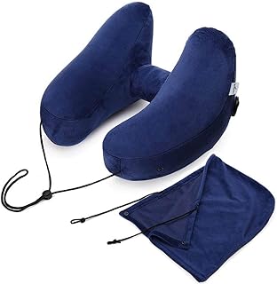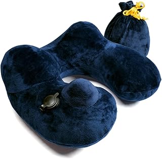 ネックピロー 携帯枕 U型 手動プレス式膨らませる 旅行用 飛行機品 バス オフィス 柔らかいエアー枕 収納ポーチ付