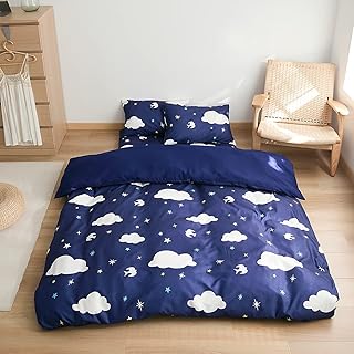 コヨリ(coyoli) 布団カバー 3点セット シングル ロング 北欧 可愛い おしゃれ 掛け布団カバー ボックスシーツ 敷布団カバー 枕カバー 寝具カバーセット 17539 (和式, ほしぞらネイビー)