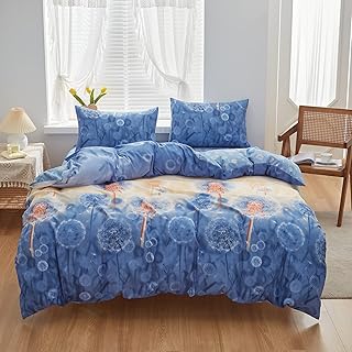 Skazi 布団カバー シングル 3点セット 洋式・和式兼用 和風 掛け布団カバー 敷布団カバー・ボックスシーツ 枕カバー ピーチスキン加工 通気 速乾 オールシーズン 寝具カバーセット(海底のタンポポ 150×210cm)