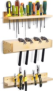 ツールラック 壁ツールオーガナイザー スクリュードライバーオーガナイザー ハンマーラック ペンチオーガナイザー 木製ツールホルダーオーガナイザー 壁ツールホルダー ツールストレージ ガレージ、ワークショップ、ワークベンチ用壁取り付け 3個パック