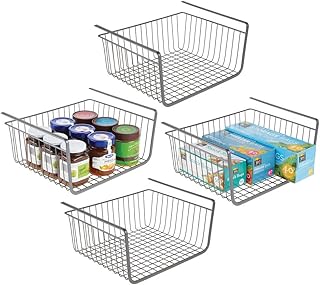 mDesign 家庭用メタル棚下吊り下げ収納バスケット オープンフロント付き キッチンキャビネット 食器棚 パントリー 棚の整理に Lサイズ 4個パック グラファイトグレー