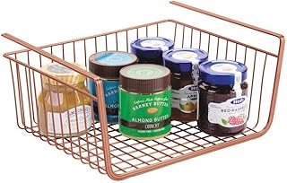 mDesign 家庭用メタル棚下吊り下げストレージビン バスケット オープンフロント付き キッチンキャビネット 食器棚 パンティー 棚の整理に 銅