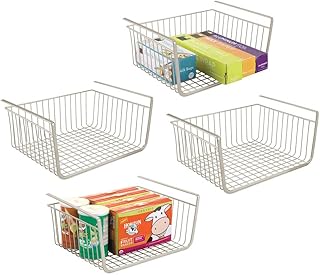 mDesign 家庭用 金属製 棚下 吊り下げ 収納 容器 バスケット オープンフロント キッチンキャビネット 食器棚 パントリー 棚の整理に Lサイズ Pack of 4 ベージュ 09995MDK