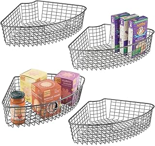 mDesign モダン装飾メタルワイヤーフードオーガナイザー ストレージビン バスケット キッチンキャビネット パントリー バスルーム ランドリールーム クローゼット ガレージ用 ブラック