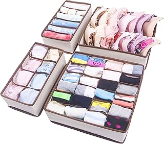 Amborido 下着収納引き出しオーガナイザー 4セット 折りたたみ式 ベージュ