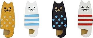 BeeChamp 4pcs Assorted Colour Mini Wooden Cute Cat Clothespin Clips Food Storage Bag Seal Clamp, Pack of 4
