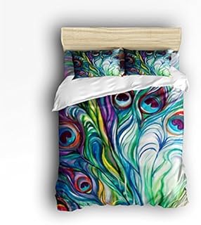 Vandarllin 完璧なクジャクの羽 水彩画 掛け布団カバーセット 子供/子供/ティーン/大人用 4ピース 100%コットン キング