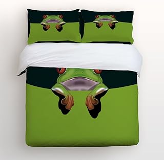 Vandarllin マンガ動物 寝具4点セット レッドアイツリー カエル プリント掛け布団カバーセット 装飾ベッドスプレッド 子供/子供/ティーン/大人用 クイーン HYJ-181206TK-CRY-0777-3
