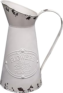 MISIXILE フレンチスタイル カントリー ビンテージ ホワイト 大きな花瓶 メタル 素朴な素朴な水差し 花瓶 ピッチャー ホーム ウェディング カフェ デコレーション 11(ホワイト)