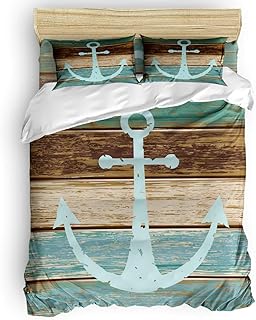 Vandarllin ノーティカルアンカー 素朴な木製掛け布団カバーセット ベッドスプレッド 子供/ティーン/大人用 4ピース 100%コットン クイーン VDL-170922-20