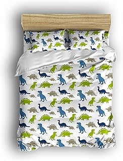 Vandarllin 恐竜プリント 男の子/子供/ティーン寝具セット 掛け布団カバーセット ベッドスプレッド 枕カバー2枚付き マルチカラー 4点 綿100%