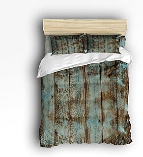 Vandarllin クイーンサイズ寝具セット - 装飾的で素朴な古いバーンウッドアート布団カバーセット ベッドカバー 子供/子供/ティーン/大人向け 4ピース 100%コットン