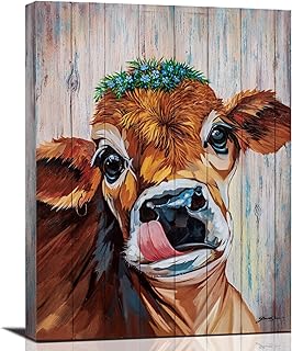 牛の絵 壁装飾 農家 キッチン キャンバス 壁アート カントリー かわいい 牛 フレームプリント バスルーム 寝室 素朴な芸術作品 デコレーション 12インチ x 16インチ