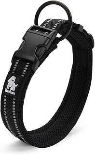 安全反射 通気 ソフト ナイロン 首にやさしい 犬用首輪 大型犬 中型犬 小型犬用 (S, ブラック)