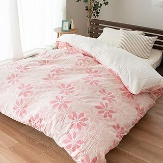 掛け布団カバー 綿100% 日本製 クイーンロング 210×210cm リーフ柄 ピンク クイーン クイーンサイズ 布団カバー 国産 綿 コットン ふとんカバー 掛布団カバー カバー シーツ かわいい おしゃれ リーフ 掛けカバー
