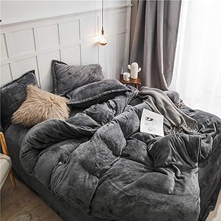 掛け布団カバー,Gsogcax フランネル ふとんカバー シングル 150×210cm ふわふわ あったか 暖か 冬用 寝具 フリース 全開ファスナー おしゃれ 洗える (ダークグレー, シングル150*210cm)