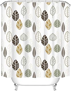 リーフシャワーカーテンセット アースブラウン グレーグリーン 葉 バスルームカーテン キュート ユニセックスカーテン 子供用 ファブリックカーテン フック付き 72インチ x 72インチ ホワイト
