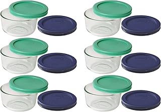 Pyrex Storage 1 Cup Round Dish, Clear with Green + Blue Lids, Containers by Pyrex