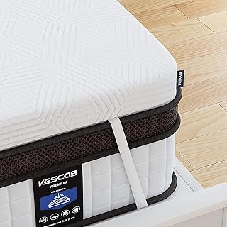 Kescas クイーンマットレストッパー 3インチ 2層形状記憶フォームマットレストッパー エアフロー冷却トッパー クイーンサイズ 洗濯可能なカバー付き サポート&圧力緩和 中硬め 100泊トライアル