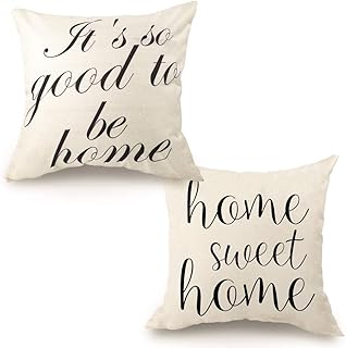 CDWERD 農家用スロー枕カバー リネンラスティック枕カバー 18 x 18インチ Home Sweet Home and It's So Good to Be Home引用句付き
