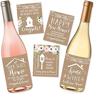 新築祝いの素朴な新築祝いプレゼント5枚、ホームオーナーのステッカーまたはワインラベルギフトセットアイデア、Congrats Home Sweet Home Party 、エージェントからのユニークな不動産ギフト、クライアントお祝い