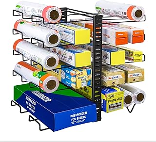 X-cosrack アップグレードラップオーガナイザーラック 多機能ラップスタンド 10本のワイヤーホルダー付き 調節可能なラップボックスオーガナイザー キッチン パントリー キャビネット ブラック L (特許出願中)