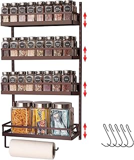 X-cosrack 4段壁掛けスパイスラック タオルハンガー付き 高さ調節可能 調味料入れ ジャーオーガナイザー 棚 フック付き キッチンキャビネットドア用 幅広洗面用具収納バスケットラック ブラウン