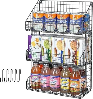 X-cosrack 3段 積み重ね可能 ティーバッグオーガナイザー Lサイズ フック5個付き メタルワイヤーバスケット スナックラックホルダー カウンタートップ キャディ ビン 壁マウントシェルフ オフィス キッチン キャビネット パントリー用 特許出願中