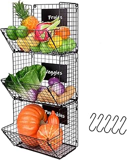 X-cosrack メタルワイヤーバスケット 壁マウント 3層壁ストレージ バスケットオーガナイザー 吊り下げフック付き 黒板 素朴なキッチン フルーツ野菜 ビンラック バスルーム タワーバスケット (ブラック)