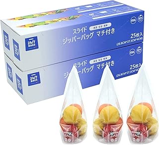 24/7 BAGS フリーザーバッグ 100枚入り ポリ袋 フリーザーバッグ スタンド 食品保存バック スライダーバッグ チャック付きポリ袋 マチ付き ジッパーポリ袋 食品保存バック 冷凍用 袋 スライダーバッグ 小物収納 Lサイズ 25枚入×4個