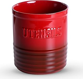 Lareina キッチン用品ホルダー カウンタートップ用キッチン用品キャディ 7インチ Lサイズ セラミック食器用クロック 滑り止めコルク底付き ホームデコレーション用 レッド