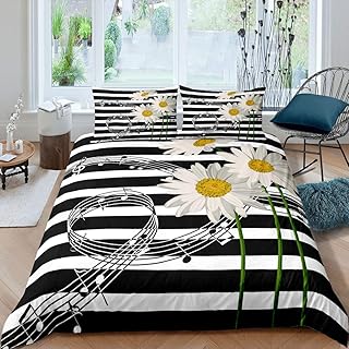 Erosebridal キングサイズ ストライプ 掛け布団カバーセット キッズ デイジーフラワー 掛け布団カバー 音符デザイン 寝具セット 男の子 女の子 モダンテーマ キルトカバー 枕カバー2枚付き ソフトで通気性あり