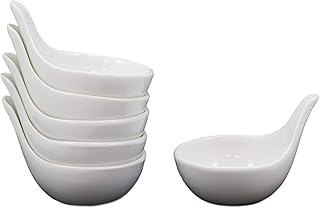 Ebros コンテンポラリー ホワイト 磁器 調味料 ケチャップ BBQ ランチソース 小さなディッピングボウル サービングディッシュ ラメキン ハンドル付き 直径2.5インチ 積み重ね可能 新築祝い レストラン用品 6個パック