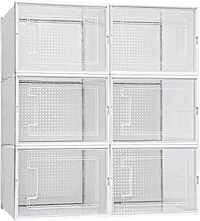 SEE SPRING 靴箱 クリアプラスチック 積み重ね可能 靴収納ボックス USサイズ12 Lサイズ 靴オーガナイザー 6個パック (ホワイト)