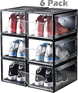 Montex 靴箱 6個パック ドロップフロント 靴収納 マグネット開閉 Lサイズ 靴オーガナイザー 積み重ね可能 靴コレクションディスプレイ ワイド ブラック